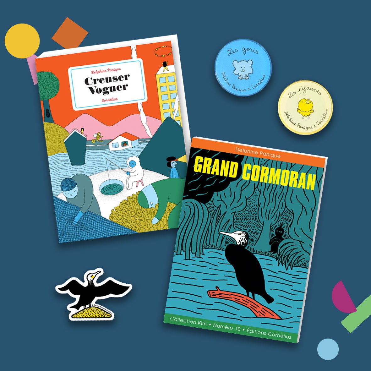 Vous recherchez un cadeau à la fois poétique et engagé ? Ce lot signé Delphine Panique est fait pour vous ! Dans "Creuser voguer", l’autrice construit une “fausse-fiction” pour offrir un récit sensible et puissant sur des femmes oubliées, dans une bande dessinée au style sublime (Prix Bulle d’Humanité 2023). Avec "Grand cormoran", elle nous entraîne cette fois dans une douce contemplation des oiseaux au fil d’un fleuve. Et pour compléter ce bel ensemble, deux adorables masking tapes et un autocollant illustrés par l’autrice viennent parfaire le lot.